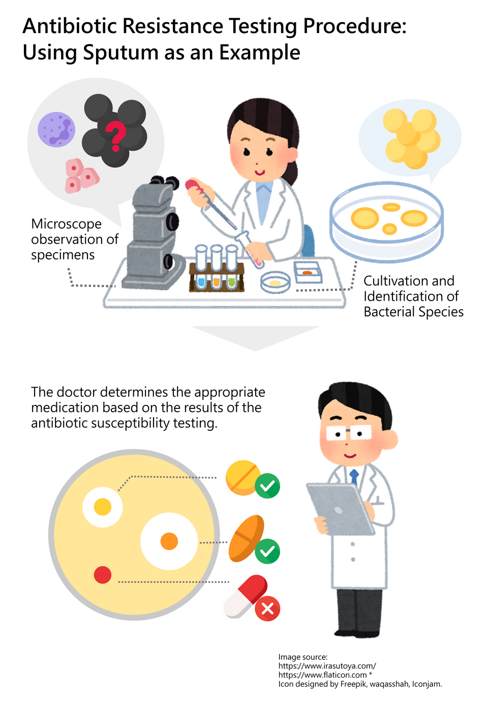 If a bacterial infection occurs, how can we determine which antibiotic is effective? In hospitals, a comprehensive antibiotic test involves several crucial steps. Taking the assessment of bacterial resistance in sputum as an example, the process begins with a microscopic examination. This initial step involves observing the specimen (sputum) for the presence of cells (such as epithelial cells), white blood cells, or bacteria. While bacterial characteristics may be visible at this stage, the specific species cannot yet be confirmed. Therefore, the bacteria in the sample are simultaneously cultured and identified. Only after confirming the bacterial species can further testing be conducted to assess its response to various antibiotics—this is the antibiotic susceptibility testing. Based on these results, the doctor selects the most effective and appropriate antibiotic for the patient’s treatment. (Figure 2)